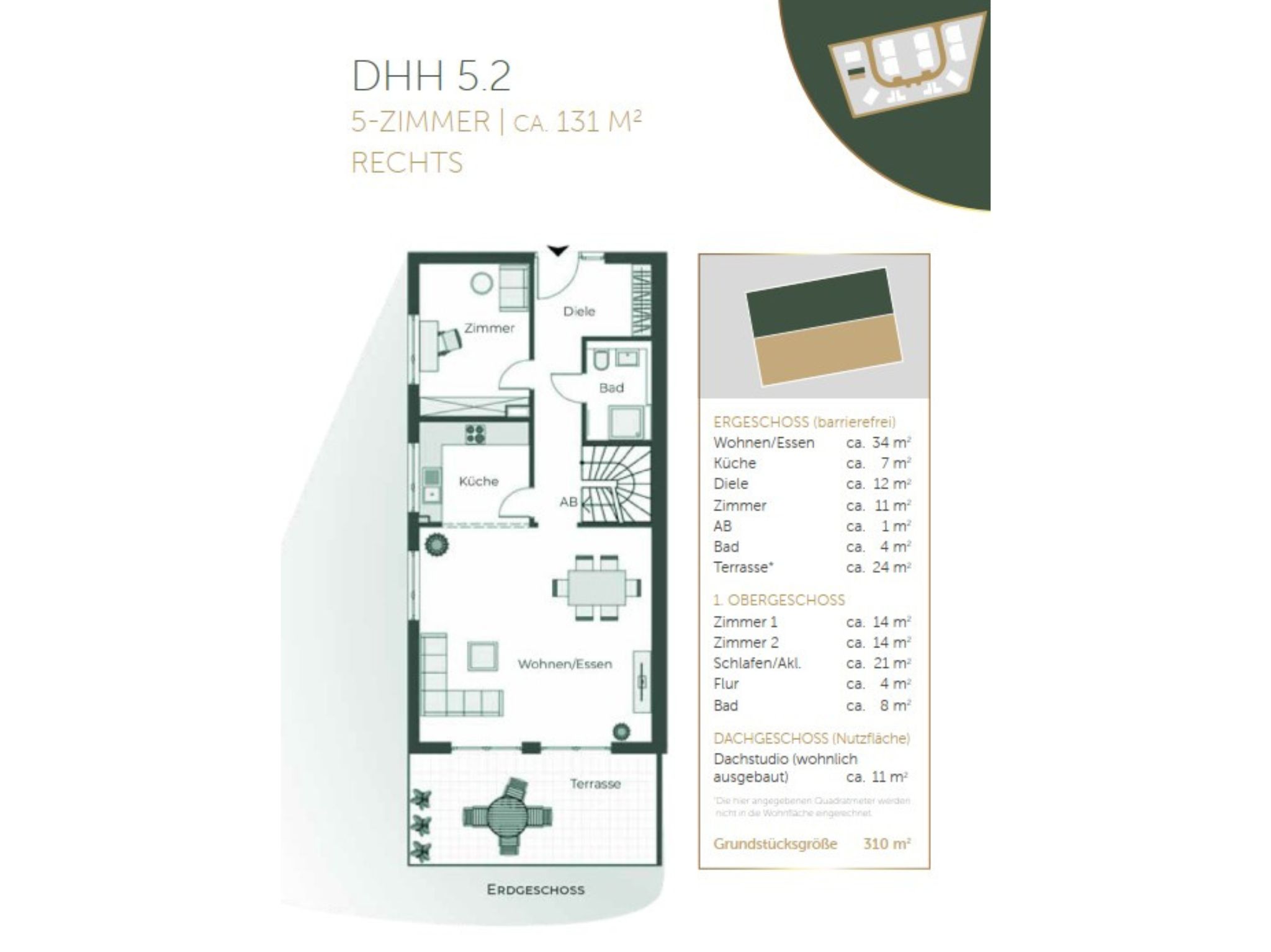 Dachstudio · 2 Bäder · Grundstücke 310 m² - 498 m²